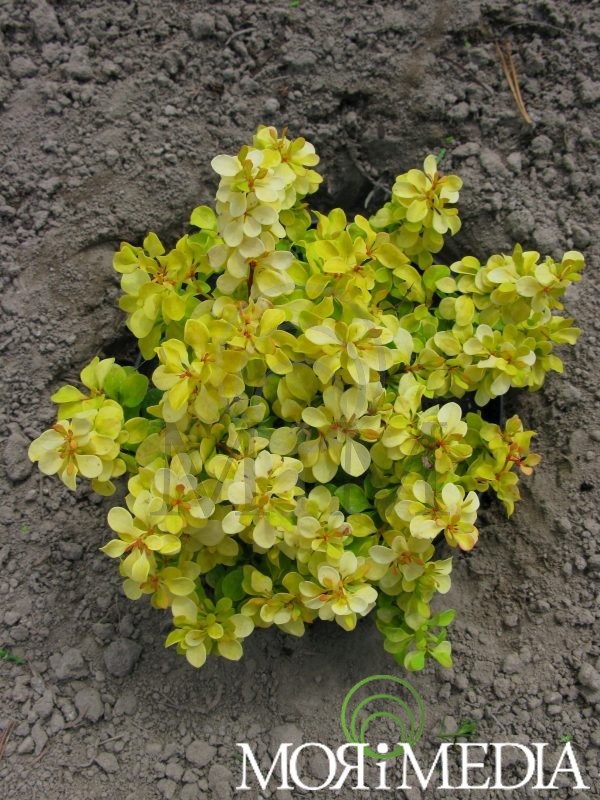 Krzew dorastający do 0,4m wys. Liście złote. Kwiaty żółte (V). Owoce czerwone (VIII-IX). Preferuje stanowiska słoneczne i półcieniste. pH gleby: tolerancja.