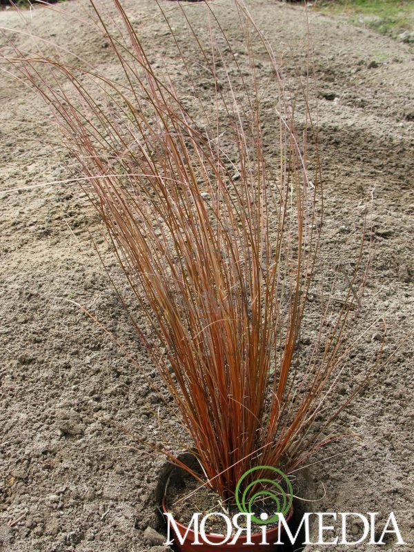 Zimozielona trawa dorastająca do 0,7m wys. o rudobrązowych liściach. Brązowe pędy kwiatostanowe (VIII-IX). Preferuje stanowiska słoneczne, gleby suche, ale próchniczne. pH gleby: obojętne. Zalecane krótkie przycinanie rośliny co wiosnę przed rozpoczęciem okresu wegetacji. Rośliny nie należy przycinać, można wyczesywać.