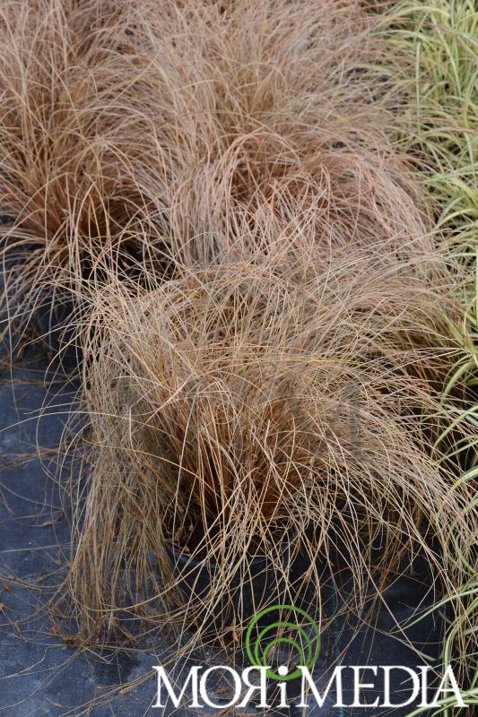 Roślina zimozielona dorastająca do 0,3m wys. Liście wąskie przewieszające się, beżowobrązowe, jesienią brązowoczerwone. Brązowe pędy kwiatostanowe (V-VI). Preferuje stanowiska słoneczne i półcieniste, gleby wilgotne. pH gleby: obojętne. Zaleca się krótkie przycinanie rośliny co wiosnę przed rozpoczęciem okresu wegetacji. Należy okrywać na zimę. Rośliny nie należy przycinać, można wyczesywać.
