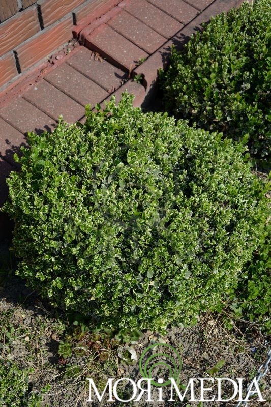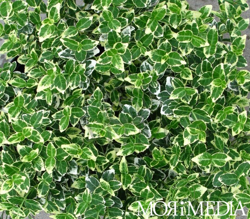 Gęsty krzew zimozielony z pokładającymi się pędami. Dorasta do 0,5 m wys. i 1m szer. Rosnąc przy dużej podporze potrafi się wspinać do wysokości dwóch metrów. Liście zielone białoobrzeżone. Daje sobie radę zarówno na stanowiskach słonecznych jak i półcienistych. pH gleby: tolernacja. Lubi gleby wilgotne.