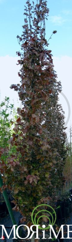 Drzewo o pokroju kolumnowym dorastające do 15m wys. i 3m szer. Liście powcinane, błyszczące, purpurowe, jesienią jasnobrązowe. Preferuje stanowiska słoneczne i półcieniste. pH gleby: zasadowe.