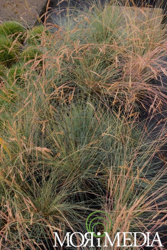 Gęsta, zimozielona trawa dorastająca do 0,2m wys., a podczas kwitnienia do 0,5m wys. Liście niebieskozielone. Złote pędy kwiatostanowe (V-VI). Preferuje stanowiska słoneczne. Lubi suche, lekkie podłoże. pH gleby: obojętne.