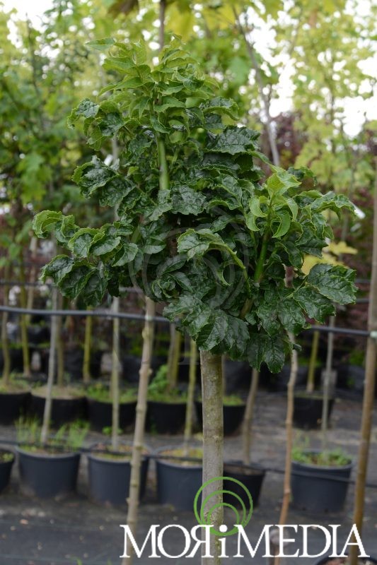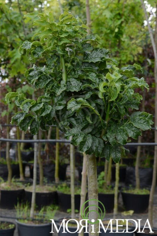 Wolnorosnące drzewo o niedużej, gęstej i nieregularnej koronie. W ciągu 10 lat dorasta do 1,2m wys. Liście ciemnozielone, poskręcane. Pędy bardzo grube, ustawione pionowo do góry. Preferuje stanowiska słoneczne i półcieniste. Optymalne pH gleby: tolerancja.