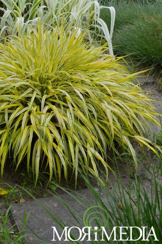 Trawa tworząca gęste kępy do 0,3m wys. Liście żółte z zielonym paskiem wzdłuż liścia. Żółte pędy kwiatostanowe (VIII-X). Preferuje stanowiska półcieniste, osłonięte i ciepłe. Lubi żyzne, przepuszczalne, umiarkowanie wilgotne podłoże. pH gleby: obojętne.