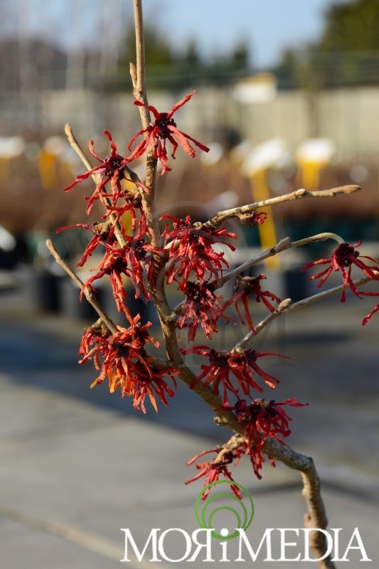 Półokrągły krzew dorastający do ok. 3m wys. i 4m szer. Liście zielone, jesienią przebarwiają się na pomarańczowo. Kwiaty o oryginalej formie, czerwone, pachnące (II-III). Lubi stanowiska osłonięte, słoneczne do cienistych. Preferuje gleby wilgotne, przepuszczalne o pH lekko kwaśnym do obojętnego. Młode egzemplarze należy okrywać na zimę.
