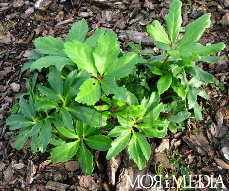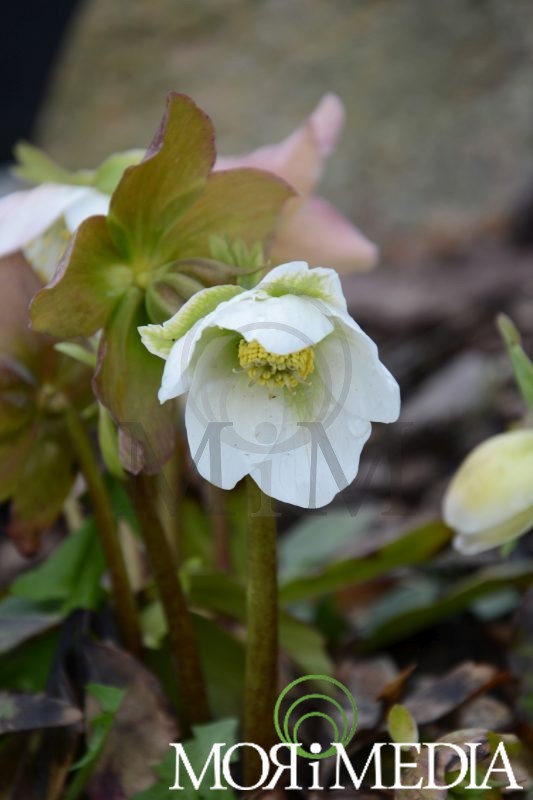 Zimozielona bylina dorastająca do 0,3m wys. Liście zielone. Kwiaty białe, 7-centymetrowe (II-IV). Preferuje stanowiska osłonięte, słoneczne i półcieniste. Optymalne pH gleby: zasadowe. Lubi gleby wilgotne, próchnicze.