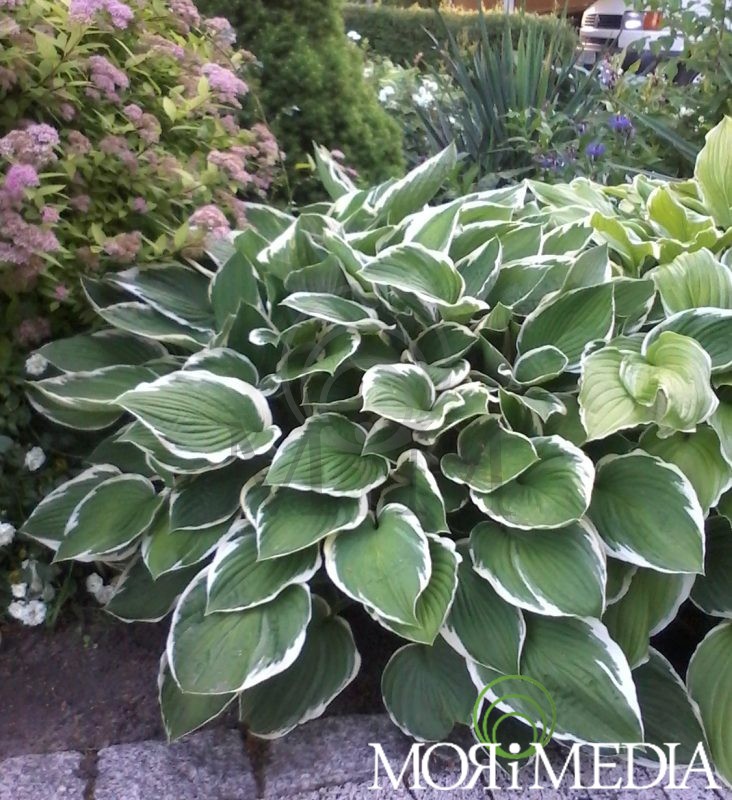 Bylina o ciekawym ulistnieniu. Dorasta do 0,35m wys. i 0,9m szer. Liście ciemnozielone z białym obrzeżeniem. Kwiaty fioletowe (VII-VIII). Lubi stanowiska słoneczne, półcieniste i cieniste. Gleby wilgotne, przepuszczalne, próchnicze o pH obojętnym. Liczba roślin na m2: 2.