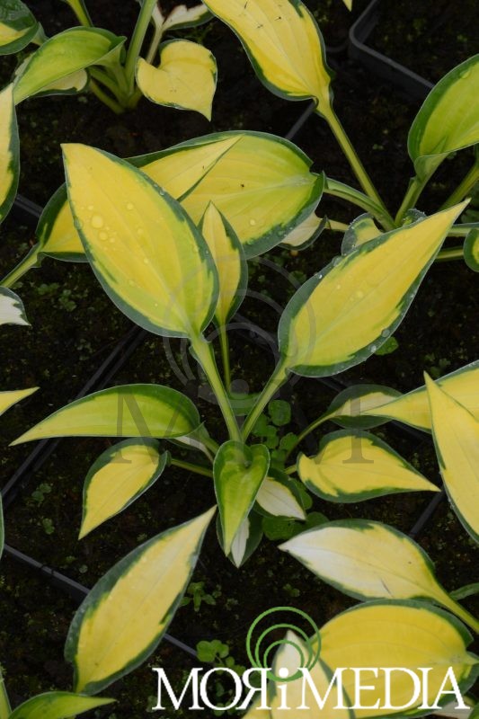 Bylina o ciekawym ulistnieniu. Dorasta do 0,4m wys. i 0,8m szer. Liście wiosną jasnozielone z szerokim ciemnozielonym obrzeżeniem, później żółte z szerokim ciemnozielonym obrzeżeniem. Kwiaty jasnofioletowe (VII-VIII). Preferuje stanowiska półcieniste i cieniste. Gleby wilgotne, przepuszczalne, próchnicze o pH obojętnym. Liczba roślin na m2: 2.