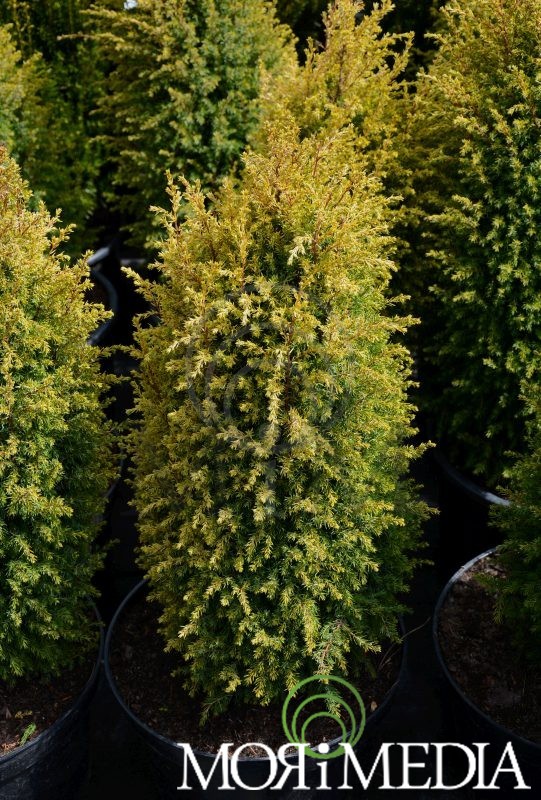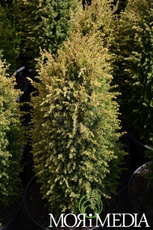 Roślina wolnorosnąca o kolumnowym pokroju. W ciągu 10 lat dorasta do: 1m wys. i 0,3m szer. Kolor złoty. Preferuje stanowiska słoneczne. Optymalne pH gleby: lekko kwaśne.