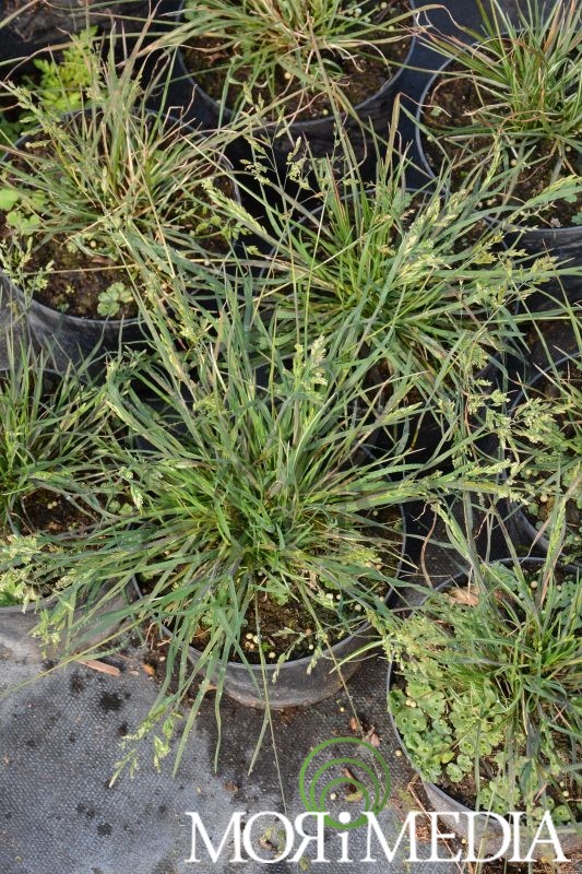 Karłowa, kępiasta trawa ozdobna dorastająca w czasie kwitnienia do 0,3m wys. Liście wąskie, zielone z podłużnym białym paskiem. Pędy kwiatostanowe srebrnobeżowe (VIII-X). Lubi stanowiska ciepłe i słoneczne. Gleby umiarkowanie wilgotne. pH gleby: zasadowe. Roślinę należy przycinać po zimie na wyskości 6cm od ziemi.