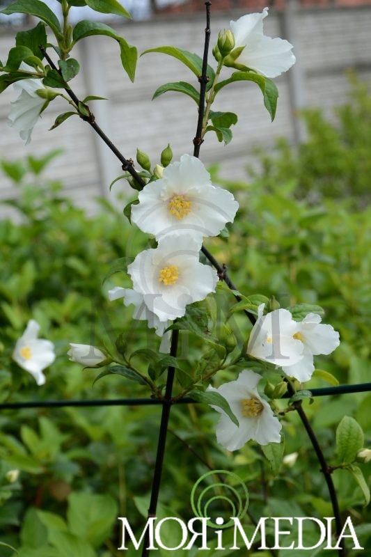 Krzew dorastający do 1,5m wys. Liście zielone. Białe, pachnące kwiaty (VI-VII). Kwitnienie obfite. Preferuje stanowiska słoneczne i półcieniste. Optymalne pH gleby: obojętne, zasadowe.