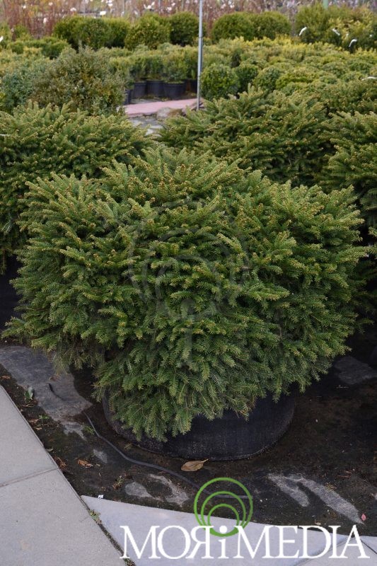 Wolnorosnąca odmiana świerka dorastająca w ciągu 10 lat do 0,5m wys. i 1m szer. Pokrój płaskokulisty z charakterystycznym zagłębieniem w środku. Igły zielone. Preferuje stnaowiska słoneczne. Optymalne pH gleby: lekko kwaśne.