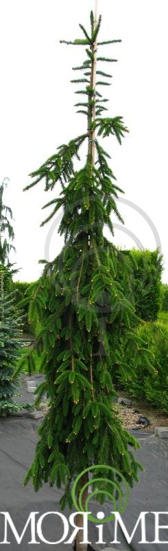 Świerk szybkorosnący o pokroju bardzo nieregularnym, z przewisającymi pędami i wyraźnym przewodnikiem. Dorasta w ciągu 10 lat do 3m wys. Igły ciemnozielone. Preferuje stanowiska słoneczne. Optymalne pH gleby: lekko kwaśne. Gleby umiarkowanie wilgotne. Gleby umiarkowanie wilgotne. Gatunek nie lubi zanieczyszczonego powietrza i suchych stanowisk.