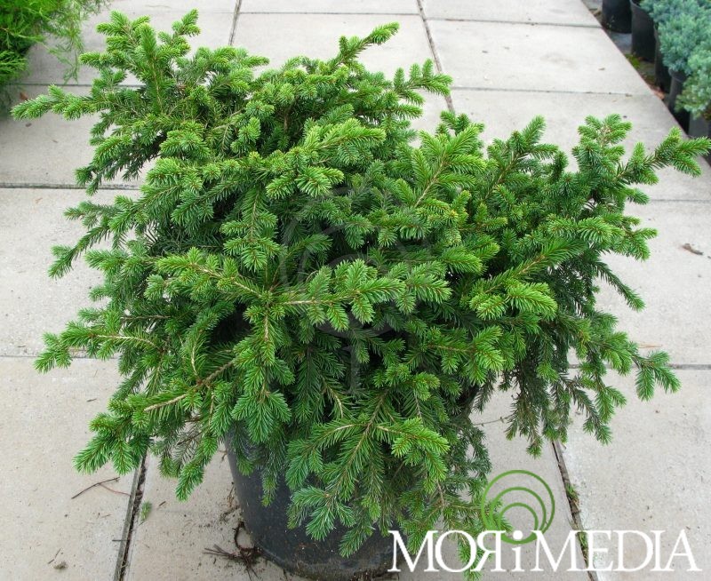 Wolnorosnąca odmiana świerka dorastająca w ciągu 10 lat do 0,4m wys. i 0,6m szer. Pokrój płaskokulisty. Igły ciemnozielone. Preferuje stnaowiska słoneczne. Optymalne pH gleby: lekko kwaśne.