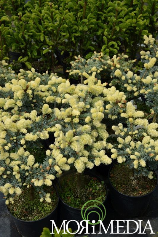 Roślina wolnorosnąca o pokroju szerokostożkowym. W ciągu 10 lat dorasta do 0,8m wys. i 0,4m szer. Igły srebrnoniebieskie, kłujące. Młode przyrosty kremowożółte. Preferuje stanowiska półcieniste. Optymalne pH gleby: lekko kwaśne. Gleby umiarkowanie wilgotne.