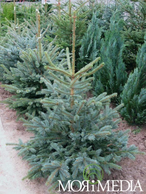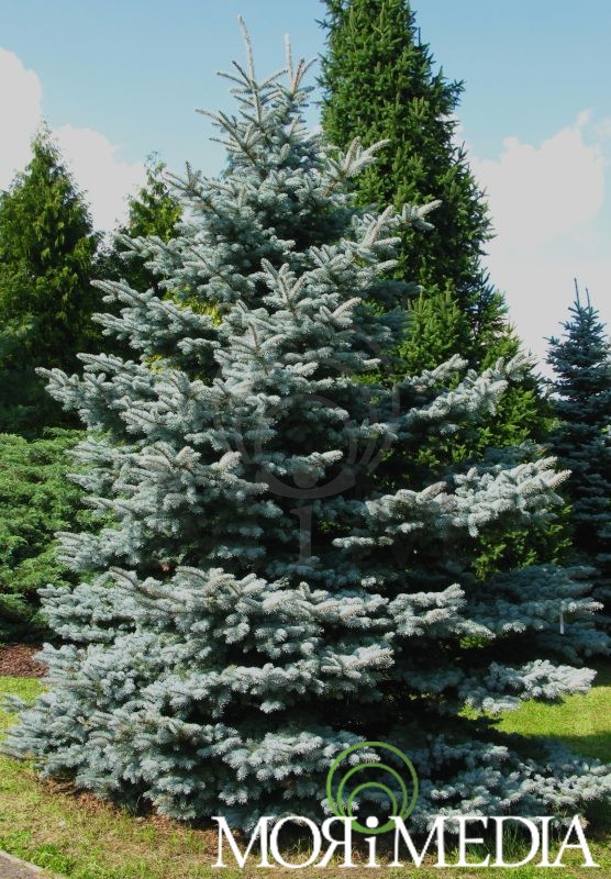 Tak zwany świerk srebrny. Gęste drzewo o stożkowym pokroju dorastające do 20m wys. i 8m szer. Igły srebrnoniebieskie. Szyszki jasnobrązowe. Preferuje stanowiska słoneczne. Optymalne pH gleby: lekko kwaśne. Roślina odporna na zanieczyszczenie powietrza oraz okresową suszę.