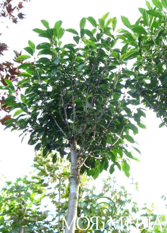 Drzewo o kulistej koronie dorastające do 3m średnicy. Liście ciemnozielone. Kwiaty białe (IV-V). Preferuje stanowska słoneczne. Optymalne pH gleby: tolerancja. Lubi gleby umiarkowanie wilgotne.