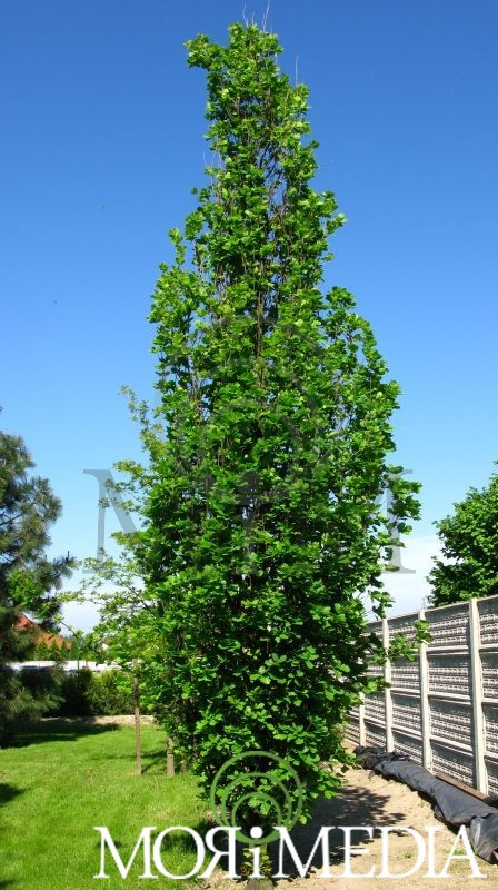 Drzewo o pokroju kolumnowym dorastające do 15m wys. i 3m szer. Liście ciemnozielone, jesienią żółte. Owocami są żołędzie (IX-X). Preferuje stanowiska słoneczne. Optymalne pH gleby: tolerancja. Lubi gleby umiarkowanie wilgotne.