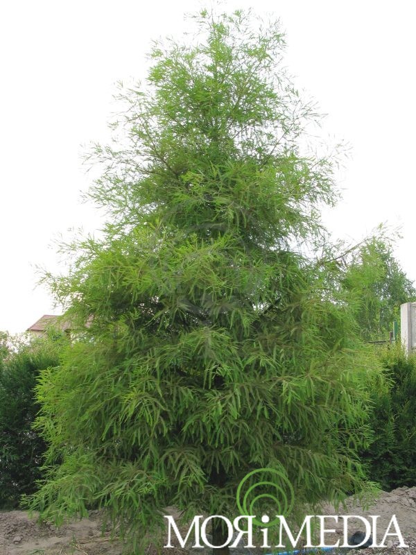 Drzewo o szerokostożkowym pokroju, dorastające w ciągu 10 lat do 3m wys. Igły jasnozielone. Zrzuca igły na zimę. Preferuje stanowiska słoneczne. Wymaga gleb bardzo wilgotnych, podmokłych. Optymalne pH gleby: kwaśne. Toleruje podłoża okresowo zalewane.