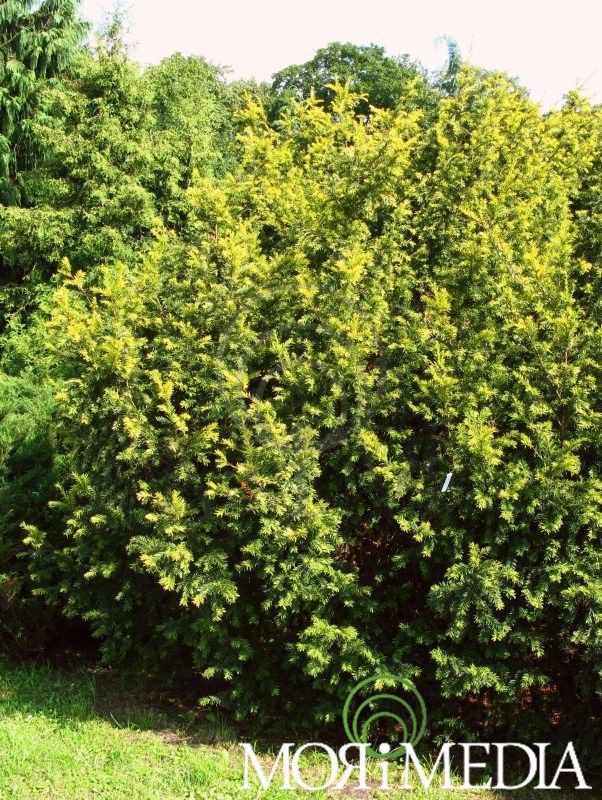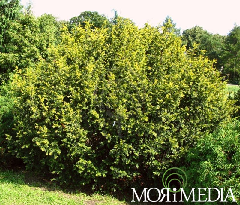 Odmiana żeńska. Szerokorozłożysty krzew bez pędu przewodniego. Igły zielonożółte, młode przyrosty żółte. Odmiana pokrywająca się z końcem lata czerwonymi owocami. W ciągu 10 lat dorasta do: 0,6 m wys. i 1 m szer. Stanowiska słoneczne, półcieniste. Optymalne pH gleby: lekko kwaśne. Lubi gleby żyzne, umiarkowanie wilgotne i przepuszczalne.