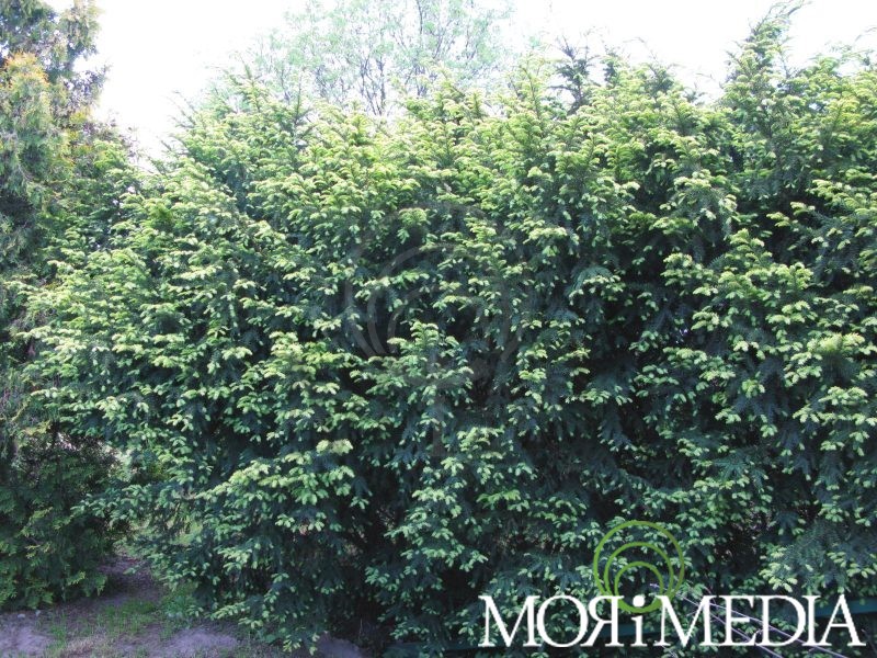 Odmiana męska. Niski, szeroki krzew o wzniesionym pokroju. Igły zielone, młode przyrosty zielonożółte. W ciągu 10 lat dorasta do: 1 m wys. i 1,5 m szer. Preferuje stanowiska słoneczne, półcieniste. Optymalne pH gleby: lekko kwaśne. Lubi gleby żyzne, umiarkowanie wilgotne i przepuszczalne.