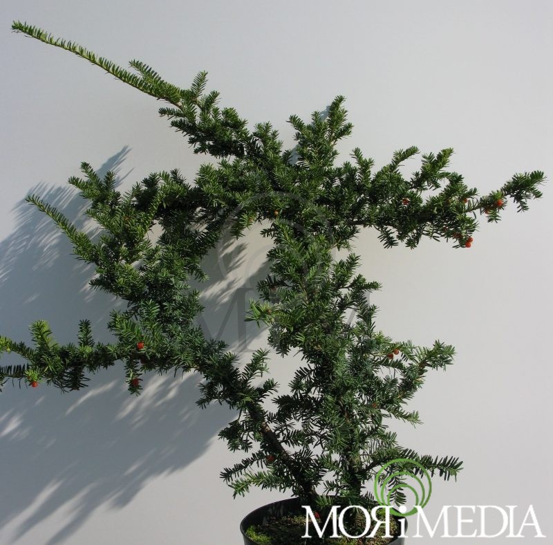 Odmiana żeńska. Rozłożysty krzew o pokroju odwrotniestożkowym. Igły ciemnozielone. Odmiana pokrywająca się z końcem lata czerwonymi owocami. W ciągu 10 lat dorasta do: 1,5m wys. i 2m szer. Stanowiska słoneczne do cienistych. Optymalne pH gleby: lekko kwaśne. Lubi gleby żyzne, umiarkowanie wilgotne i przepuszczalne.