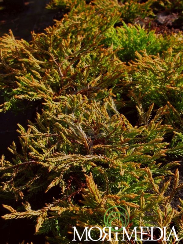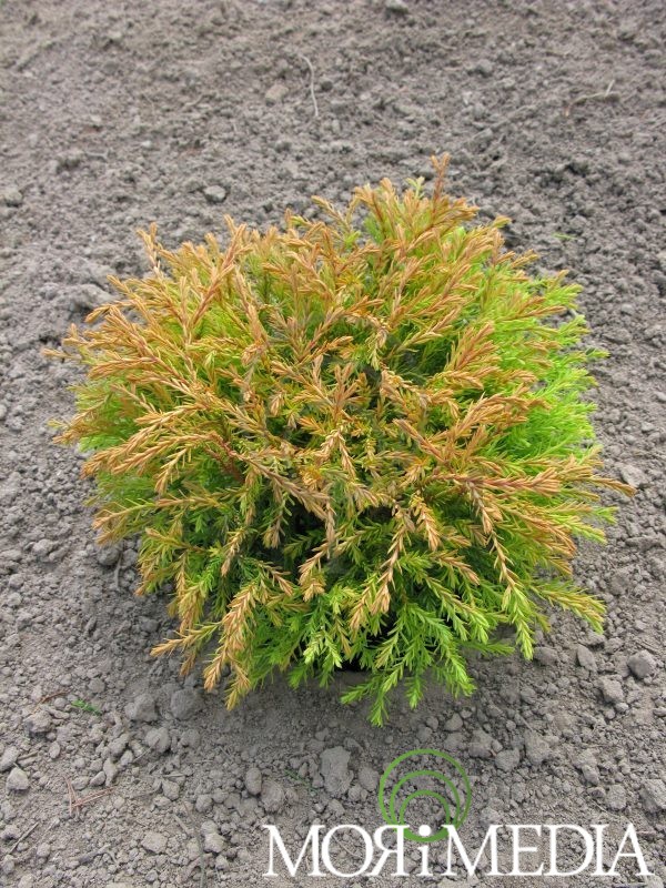 Roślina o płaskokulistym pokroju. W ciągu 10 lat dorasta do: 0,3m wys. i 0,8m szer. Kolor wiosną pomarańczowozielony, latem pomarańczowozielony, zimą pomarańczowy. Pędy wychodzą ze środka krzewu tworząc pewnego rodzaju gniazdko. Preferuje stanowiska słoneczne. Optymalne pH gleby: lekko kwaśne. Lubi gleby żyzne, umiarkowanie wilgotne. Roślina wytawarza płytki system korzeniowy. Odporna na zanieczyszczenie powietrza.