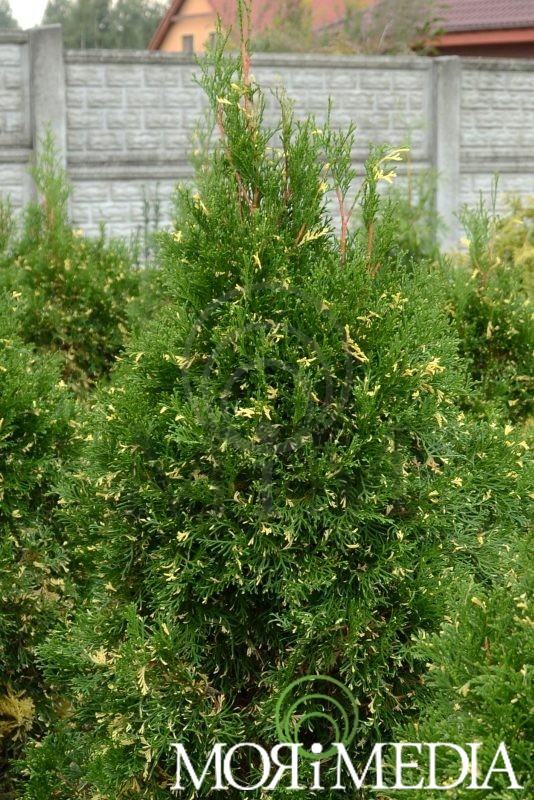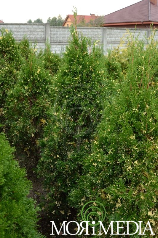 Roślina w o pokroju wąskostożkowym. W ciągu 10 lat dorasta do: 2,5m wys. i 0,8m szer. Kolor intensywnie zielony z żóltymi plamami. Preferuje stanowiska słoneczne. Lubi gleby żyzne, umiarkowanie wilgotne. Roślina wytawarza płytki system korzeniowy. Odporna na zanieczyszczenie powietrza. Doskonale nadaje się na żywopłoty.
