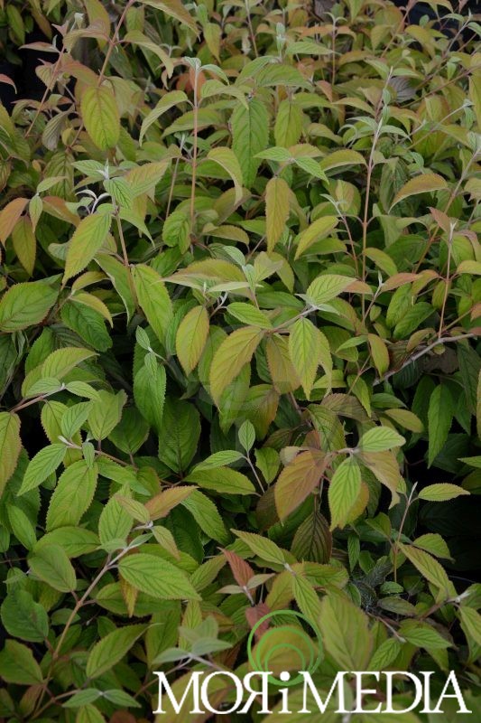 Krzew o pagodowej koronie dorastający do 2m wys. i 3m szer. Gałęzie boczne wyrastają z pnia równolegle do ziemi tworząc piętra. Liście ciemnozielone. Kwiaty białe (IV-V). Preferuje stanowiska słoneczne i półcieniste. Optymalne pH gleby: lekko kwaśne. Lubi gleby umiarkowanie wilgotne.