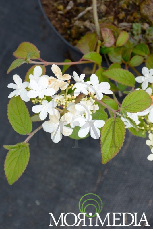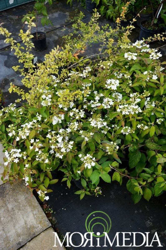 Krzew dorastający do 1,5m wys. i szer. Liście ciemnozielone. Kwiaty białe (VI-IX). Preferuje stanowiska słoneczne i półcieniste. Optymalne pH gleby: lekko kwaśne. Lubi gleby umiarkowanie wilgotne.