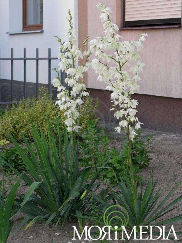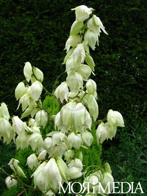 Roślina zimozielona o mieczowatych, zielonych liściach. Dorasta do 0,6m wys., w czasie kwitnienia do 1,5m wys. Kwiaty kremowe, dzwonkowate, skupione na długim pędzie (VII-VIII). Preferuje stanowiska słoneczne. Optymalne pH gleby: zasadowe. Lubi gleby żyzne, przepuszczalne.
